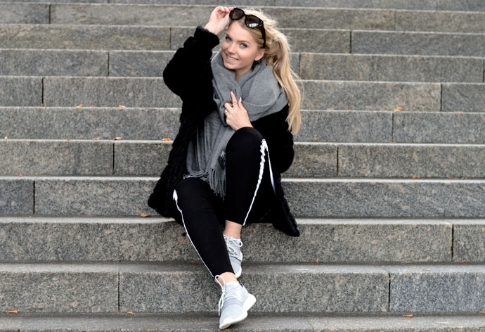 Natürlich darf man hier auch nicht meine neueste Errungenschaft vernachlässigen: meine Adidas viral tubular (die jetzt übrigens hier auch -20% reduziert sind :D). Ich weiß, eine super schlaue Aktion mir neue Sneaker in November zu bestellen, aber es war einfach Liebe auf den ersten Blick (ich hoffe auf euer Verständnis :D). Kurz bevor ich also in diesem Look das Haus verlassen habe und einen prüfenden Blick in den Spiegel geworfen hatte, hatte ich plötzlich ein inneres Bild vor meinen Augen, dass Paris Hilton Anfang der 2000 zeigte, haha! 😀 Aber genau das liebe ich an der Mode – man kann mittlerweile soviel herumspielen und ausprobieren, ohne das man direkt verurteilt wird! Meinen Fakefur Mantel habe ich übrigens auch schon eine geraume Zeit und hatte ihn damals bei Storets bestellt (es gibt ihn übrigens immernoch hier). Die Jogging Pants sind leider auch schon älter, aber da diese momentan wieder schwer im Trend liegen, habe ich euch ein paar coole Lookalikes rausgesucht. Ich hoffe, dass euch mein casual Sunday OOTD gefällt und freue mich wie immer über eure Meinungen! XX
